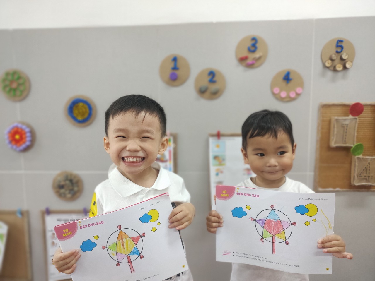 🥰🥰Trẻ em cần có những cơ hội luyện tập kỹ năng vận động tinh để phát triển khả năng phối hợp vận động và rèn luyện các cơ nhỏ ở tay. Tập vẽ và tô màu là một cách để trẻ phát triển kỹ năng vận động tinh mà sau này trẻ sẽ cần đến khi học viết. Hôm nay, các bạn nhỏ lớp MGB - Rabbit 2 có bài tập tô Đèn ông sao🌟🌟. 👉Ba mẹ hãy cùng ngắm nhìn những hình ảnh đáng yêu của các con nhé😘😘😘!