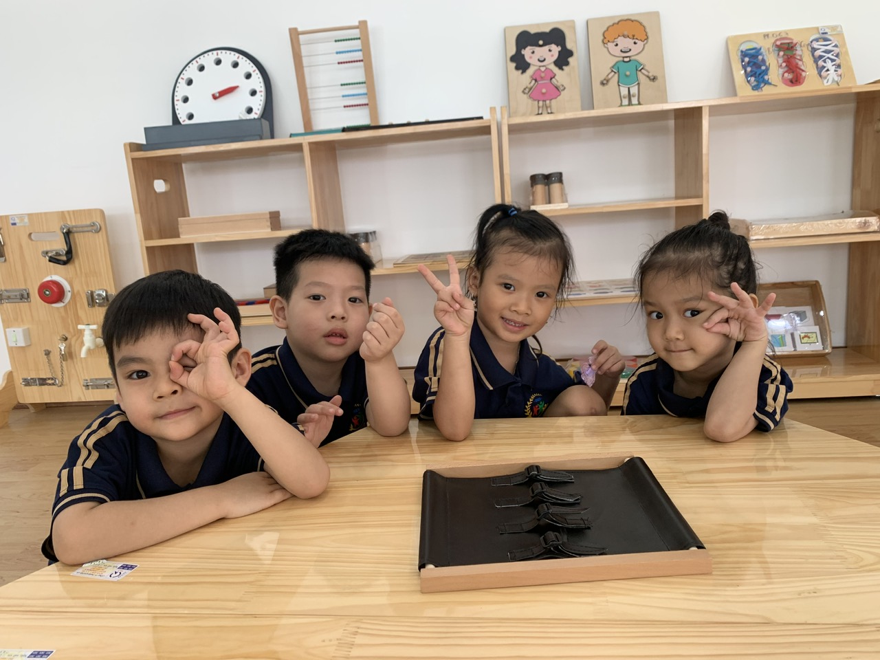 🌟Với bộ giáo cụ Montessorri khung cài đai, khối MG lớn Panda chúngs tớ đã được cô dạy kỹ năng cởi và đóng đai da đấy nhé!