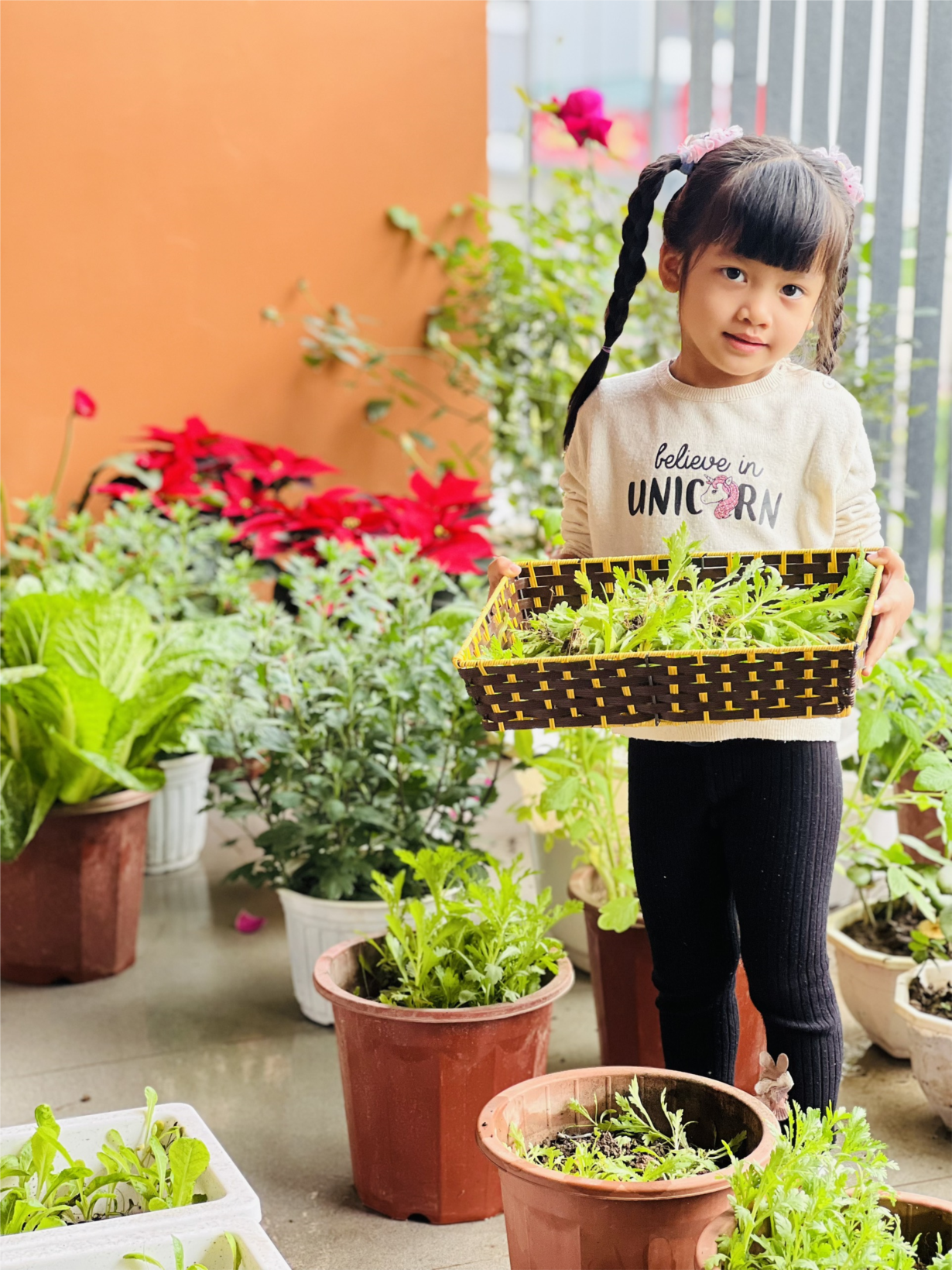 Một vườn rau nhỏ xinh của các cô và các bạn nhỏ lớp MGN B1. Vườn tủy nhỏ mà có rất nhiều các loại rau xanh : cải cúc, cải thảo, rau muống.... Hôm nay, các bạn nhỏ được tự tay mình thu hoạc những chiếc rau xanh xinh xắn , các con đã rất thích thú và hăng say.