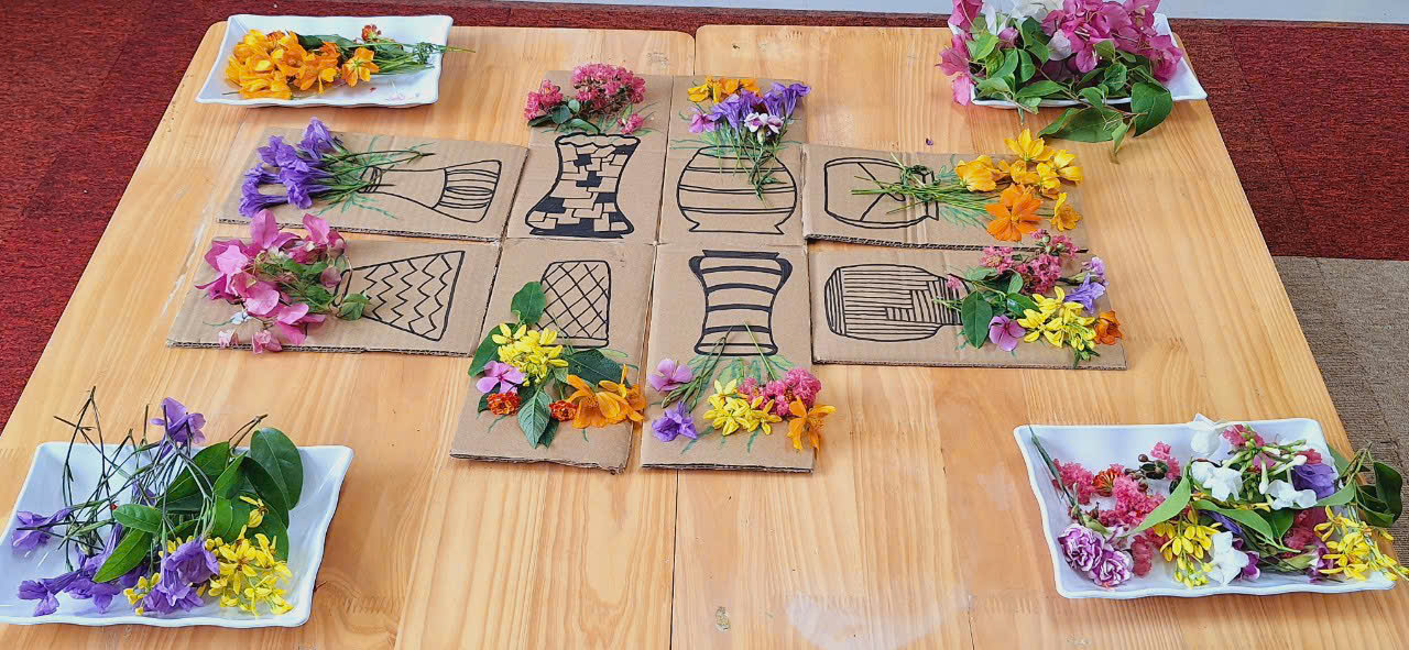 Trong buổi học cắm hoa, mỗi bé Bee D2 thỏa sức sáng tạo nên bình hoa với phong cách riêng nhưng vẫn mang đầy tính nghệ thuật. Các con sẽ được cung cấp tất cả nguyên liệu cần thiết như hoa bướm, hoa giấy, hoa ngũ sắc, hoa dừa cảnh, lan tỏi... Những bông hoa mang sắc màu của mùa hạ đã được các bé trổ tài cắm vào những lọ hoa xinh xắn.Các bạn cùng ngắm những lọ hoa xinh xắn của các bé Bee D2 nhé!