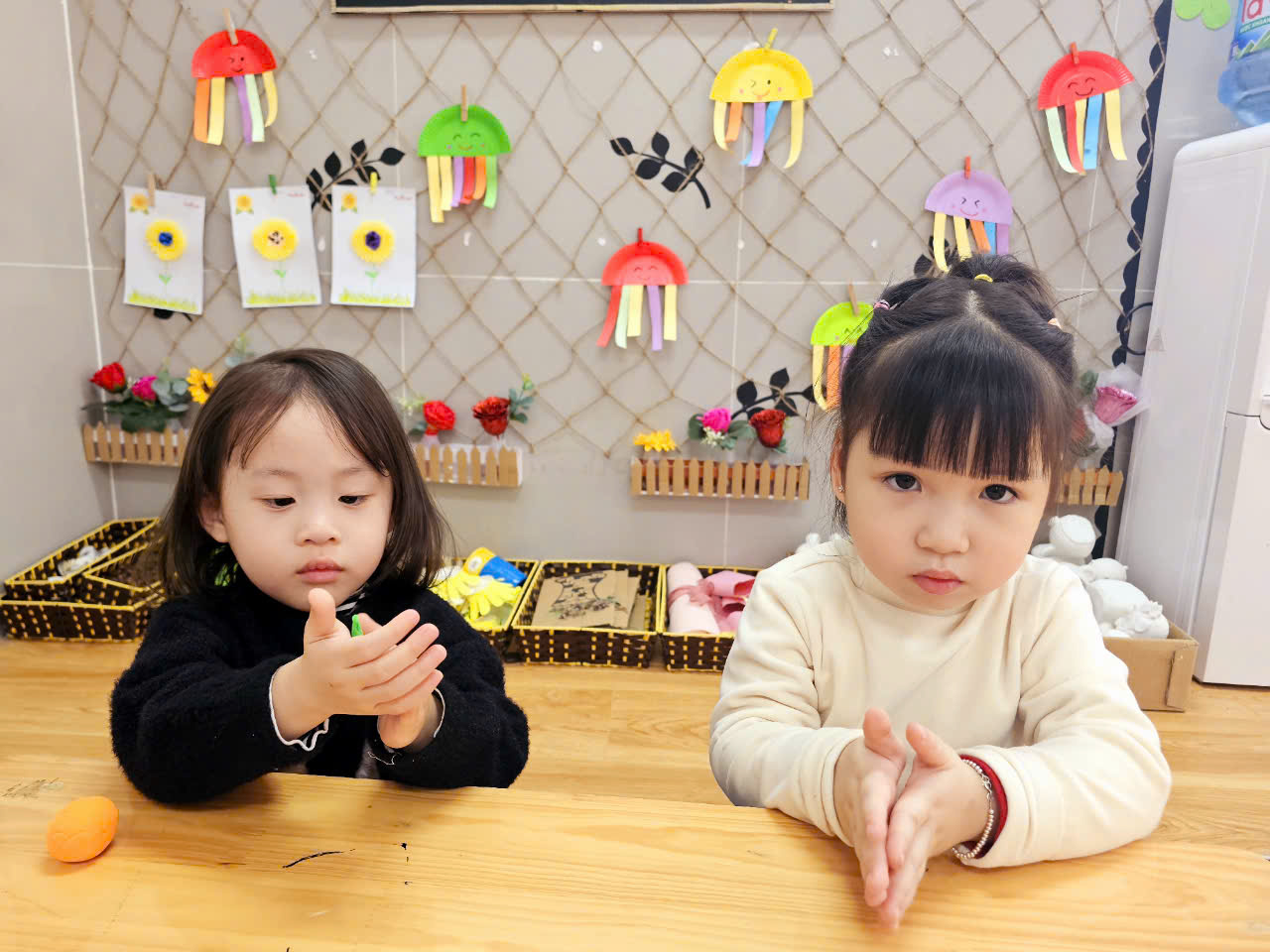 Dưới đây là một số hình ảnh của bé lớp Bee 2 tham gia hoạt động “Nặn quả cam”.
