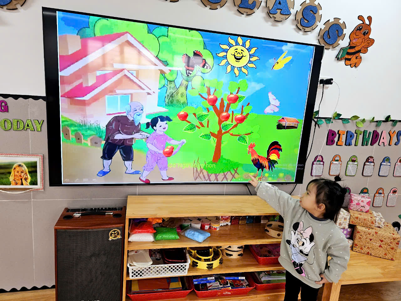 Mỗi loại trái cây đều có một câu chuyện rất lý thú. Kể chuyện sự tích về các loại trái cây cho các bé nghe là một cách gây hứng thú rất hữu hiệu cho các bé trong các tiết học làm quen văn học. Hôm nay, các bé lớp nhà trẻ Bee 2 cùng tham gia vào tiết truyện : 'Quả táo". Dưới dây là một số hình ảnh của các bé.