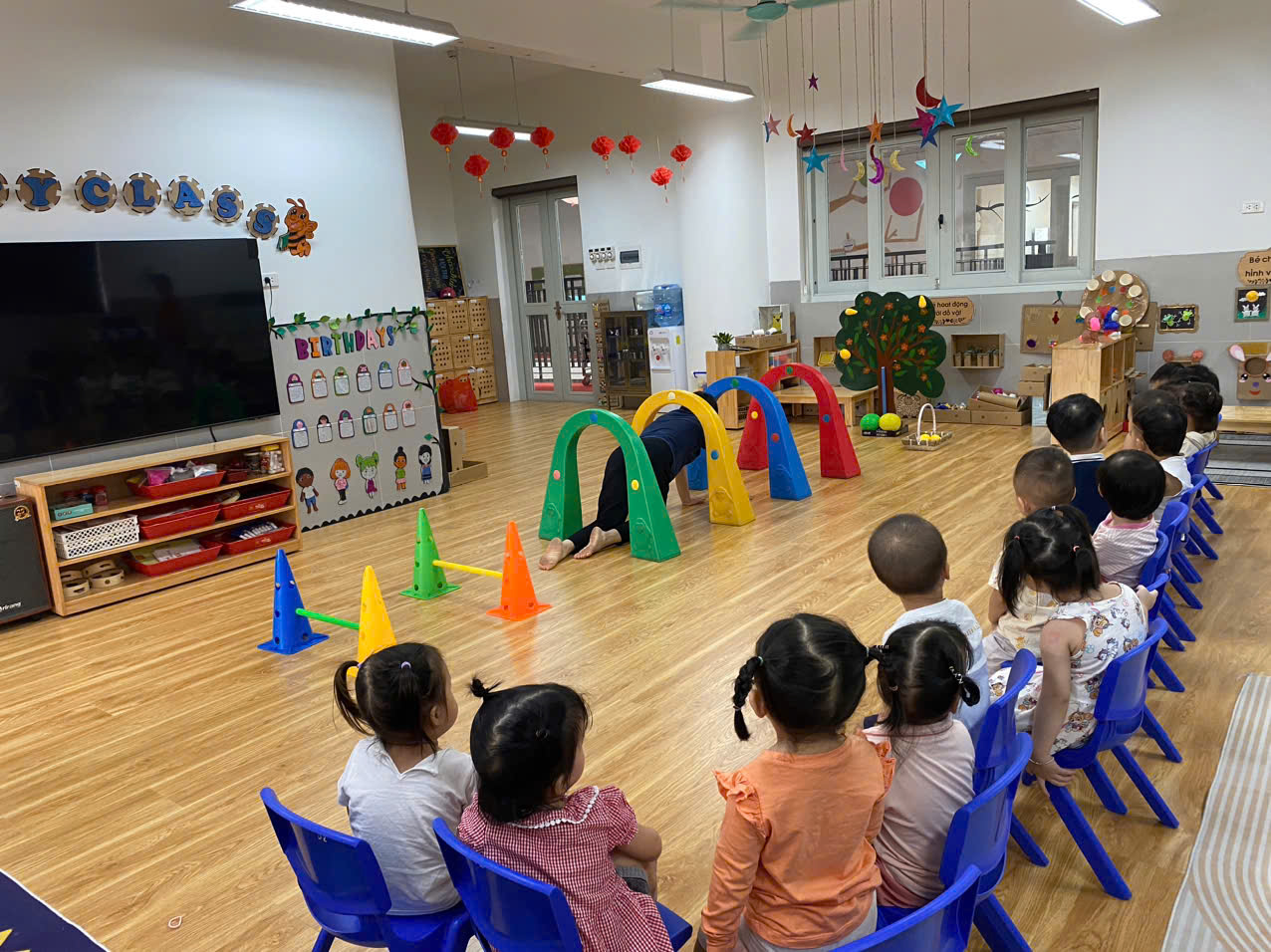 Cùng đến với Tiết học Phát triển vận động: VĐCB "Bò thấp hái quả" của các bé lớp Nhà trẻ D2