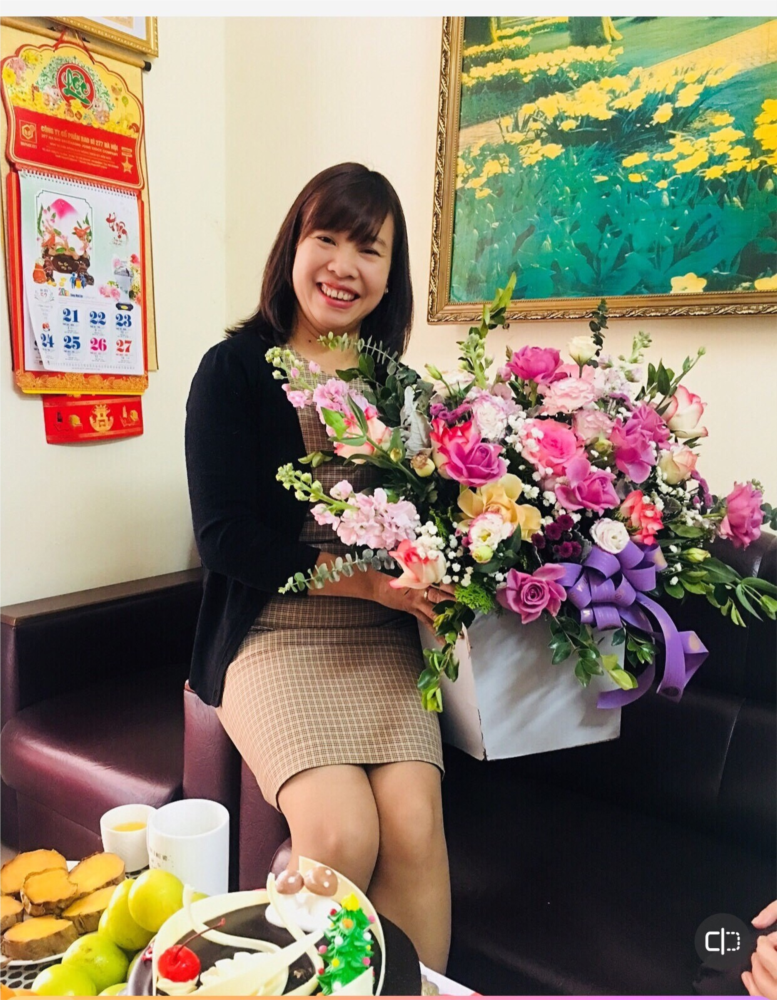 Hình ảnh cô Hà vui tươi trong ngày sinh nhật