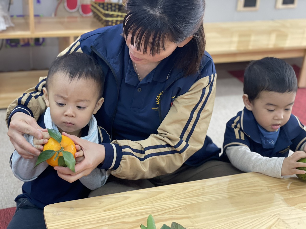 Hoạt động nhận biết " Qủa cam" giúp các con nhớ tên gọi, nhận biết một số đặc điểm của quả cam. Trong giờ học, các bé đã được quan sát, sờ, nắn, và nếm thử mùi vị của những quả cam thơm ngon đấy. Xin mời các bậc phụ huynh và các bé cùng nhìn lại hình ảnh trong giờ học nhé: