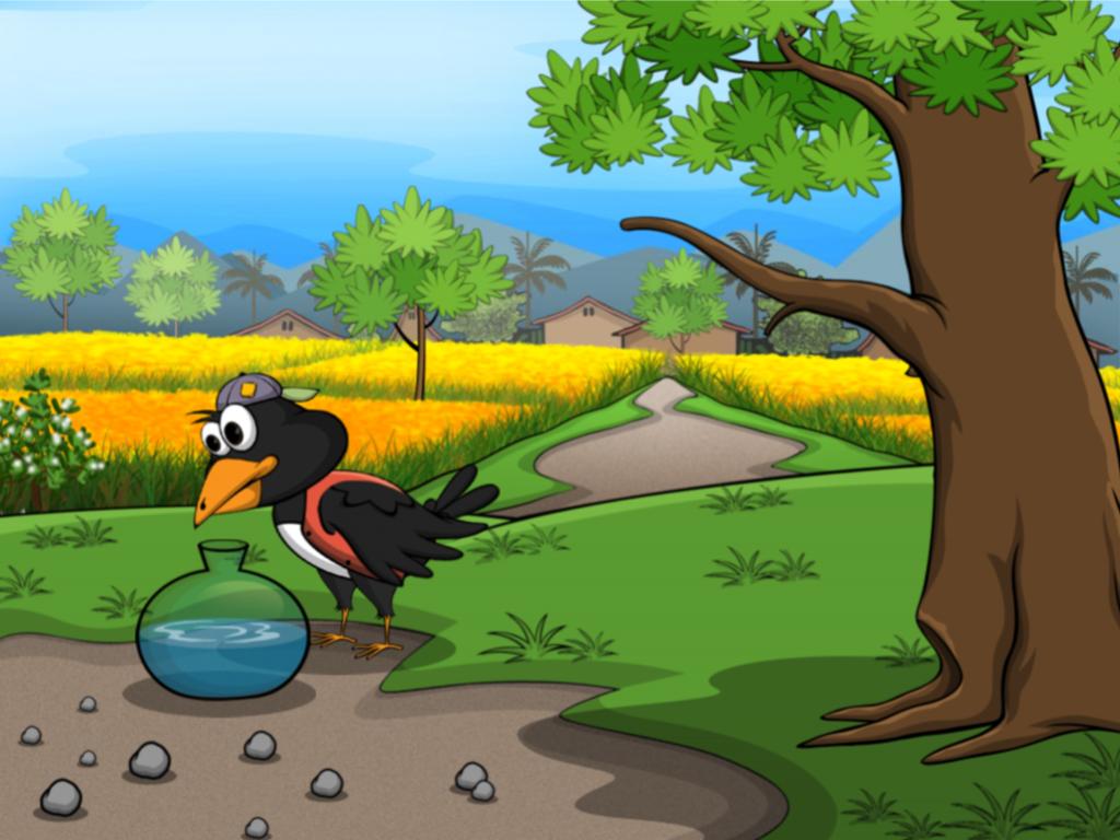 Một con quạ đang khát nước. Nó bay rất lâu để tìm nước nhưng chẳng thấy một giọt nước nào. Mệt quá, nó đậu xuống cành cây nghỉ. Nó nhìn quanh và bỗng thấy một cái bình ở dưới một gốc cây.