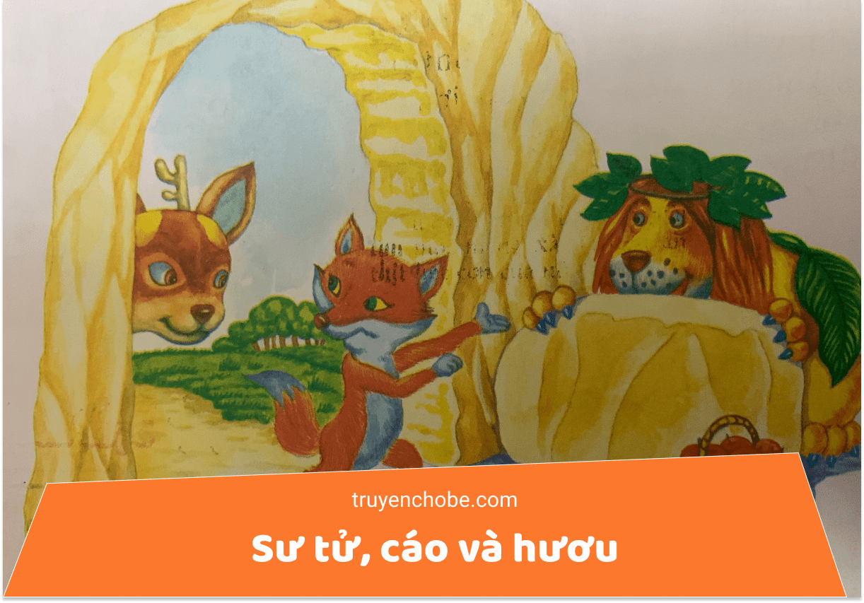 Sư tử bị ốm, nó nằm trong hang bất động và không tìm được thứ gì ăn. Do vậy, nó nhờ cáo lừa con hươu to nhất trong rừng đến hang của nó.